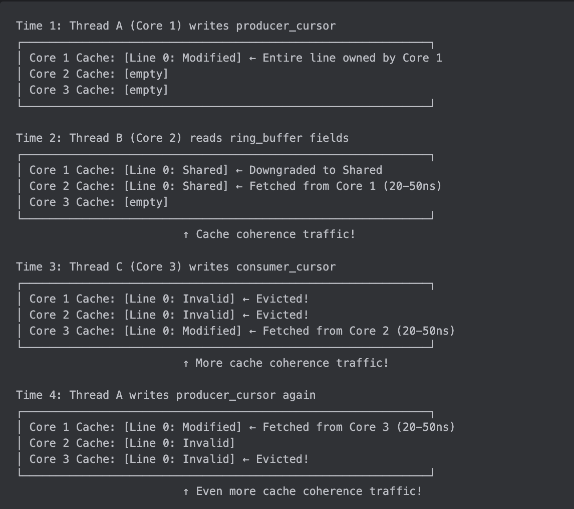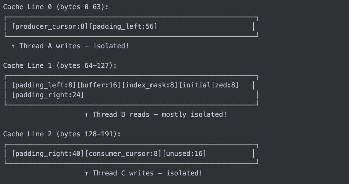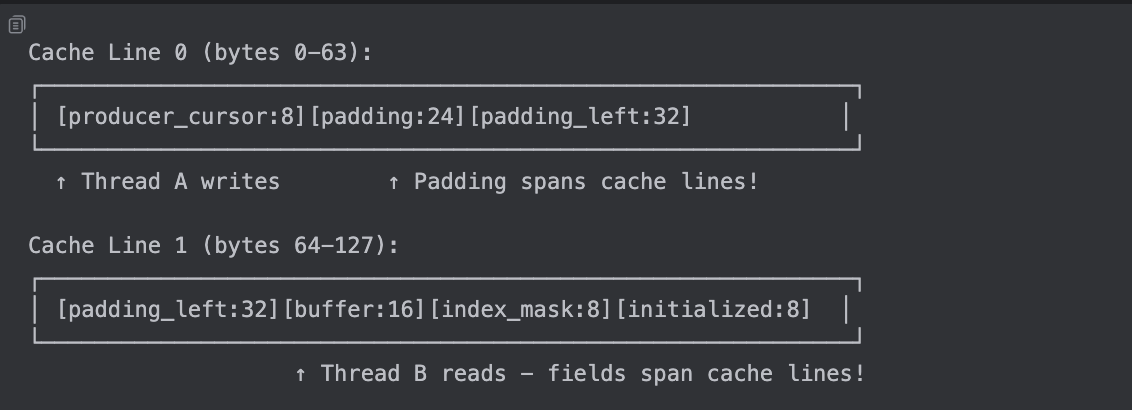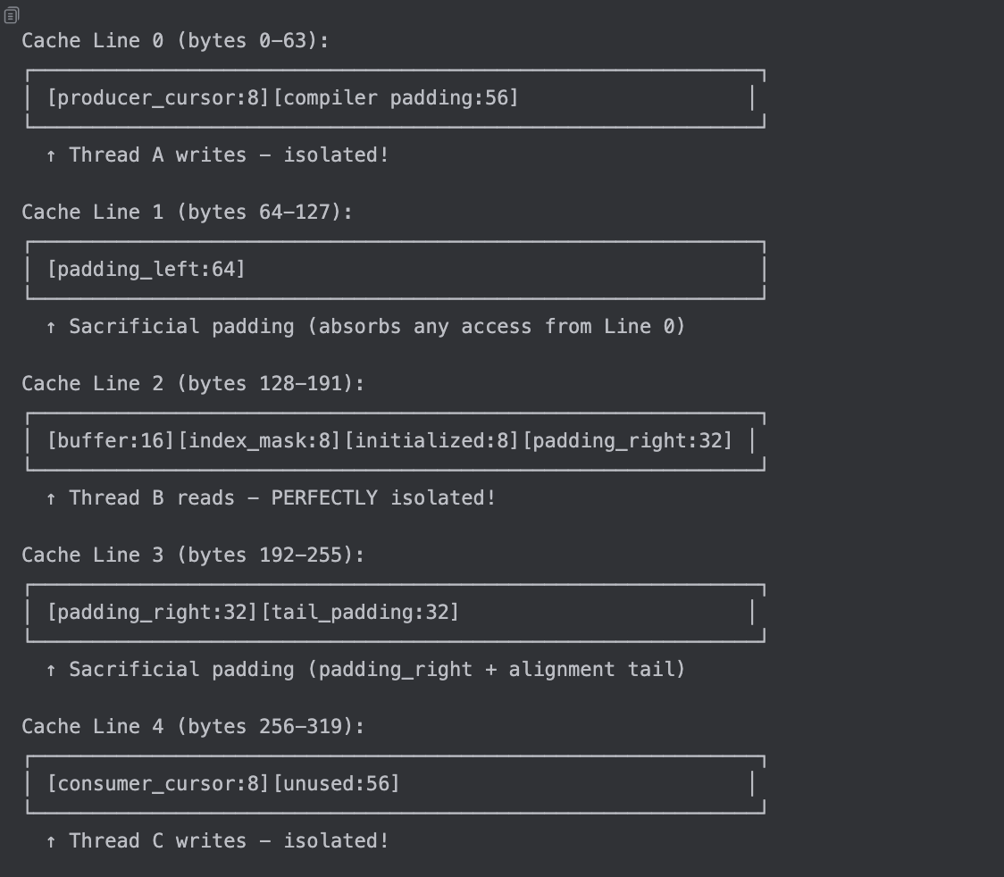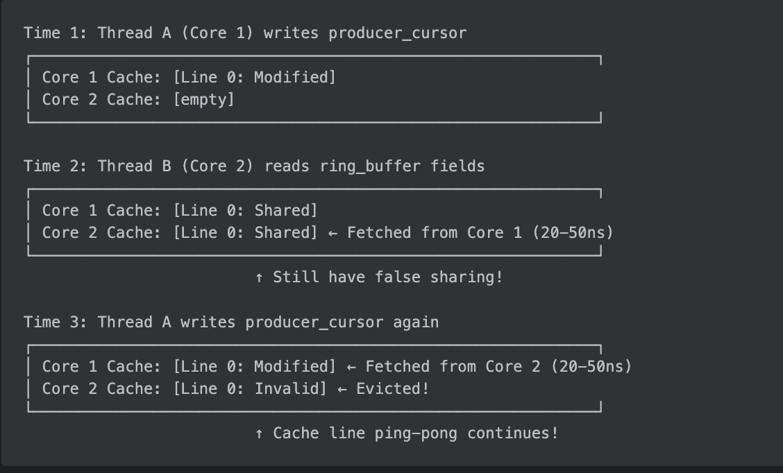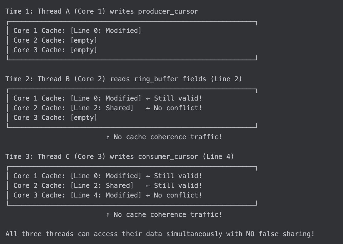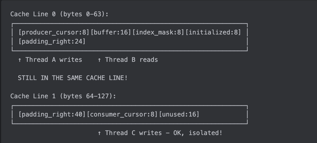 consumer_cursoris now in Cache Line 1 (isolated from ring_buffer)✅ Thread C can write to